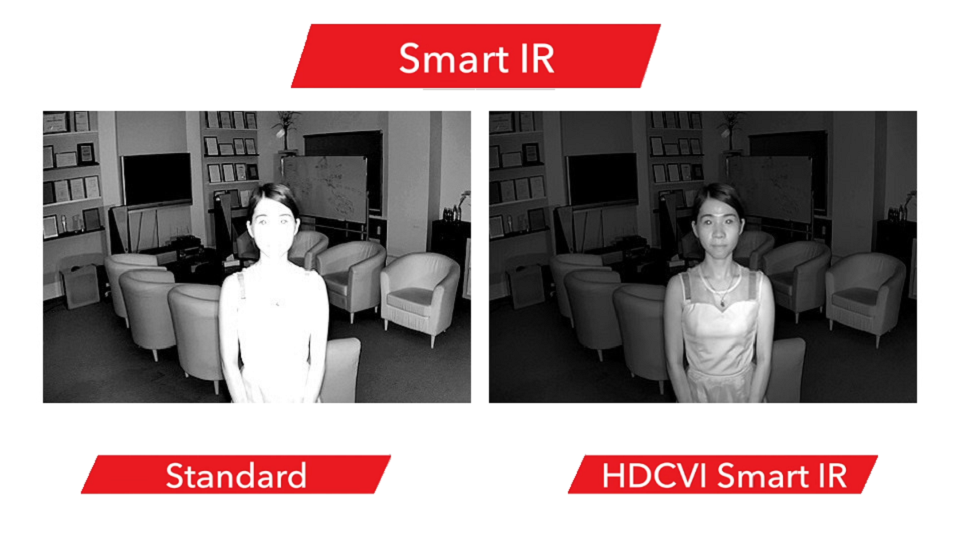 La cámara también cuenta con Smart IR, esto es que los LEDs IR al ser activados en condiciones de poca luz regulan su intensidad dependiendo de las distancias que se encuentre el objeto en frente, esto evitará imágenes blancas y podrá detectar más clara la imagen, los LEDs IR nos permiten una distancia de hasta 20 mts.