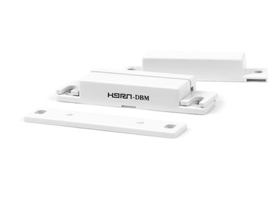 Contacto magnético cableado tradicional modelo HO-03 de iHorn para proteger puertas y ventanas en paneles de intrusión que soporten zonas cableadas en su tarjeta de conexiones. compatible con todo tipo de panel de alarma en soluciones de tipo cableado tradicional.